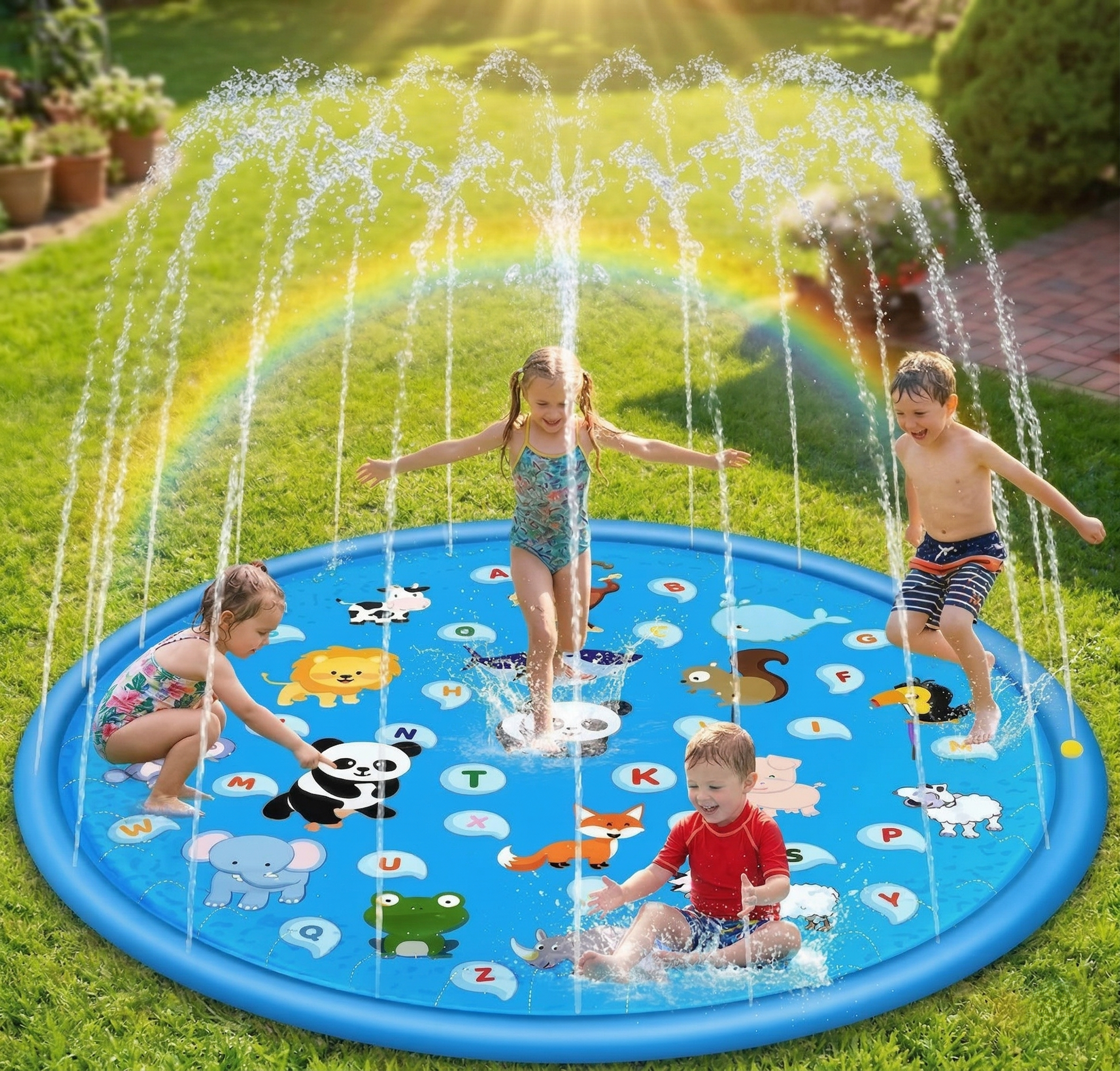 Make summer unforgettable with the 68-Inch Splash Pad for Kids – Sprinkler Water Play Mat for Summer Fun. Designed for active outdoor play, this large splash pad creates a refreshing spray of water that keeps kids cool while they run, jump, and enjoy endless fun.
