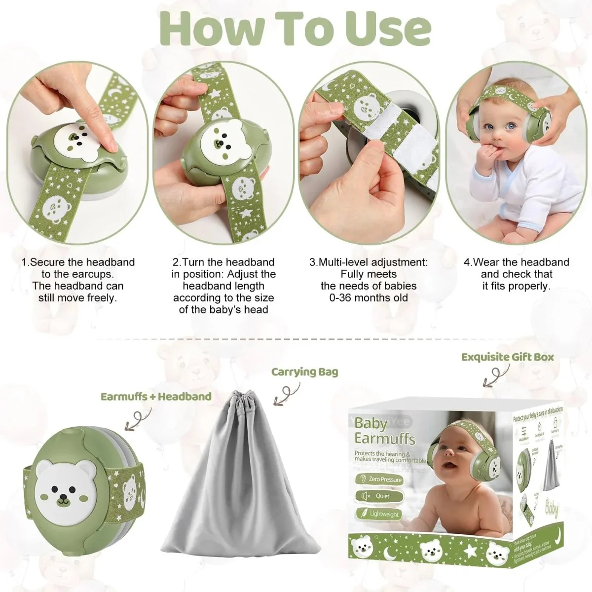 Made with soft, baby-friendly materials, the cushioned ear cups gently fit over delicate ears without causing pressure or discomfort. The adjustable, lightweight headband ensures a secure and comfortable fit for babies of different ages, allowing for extended wear without irritation.