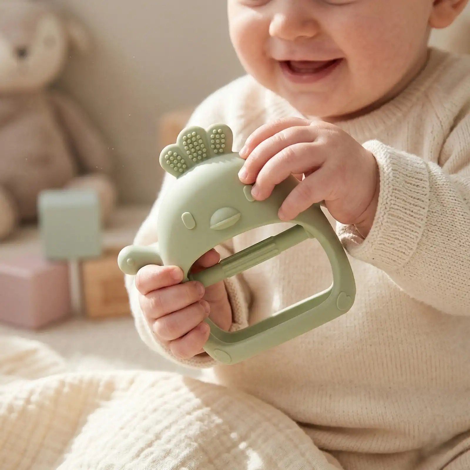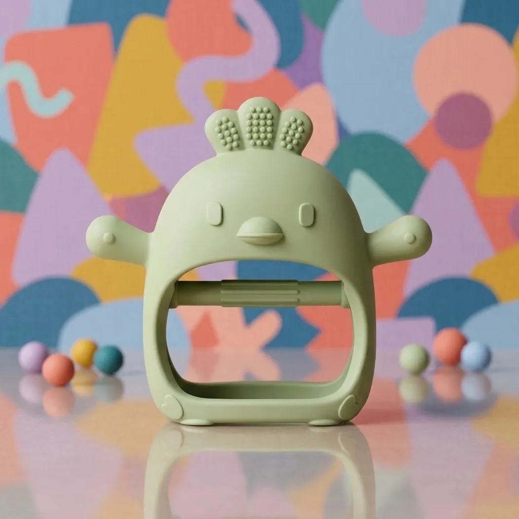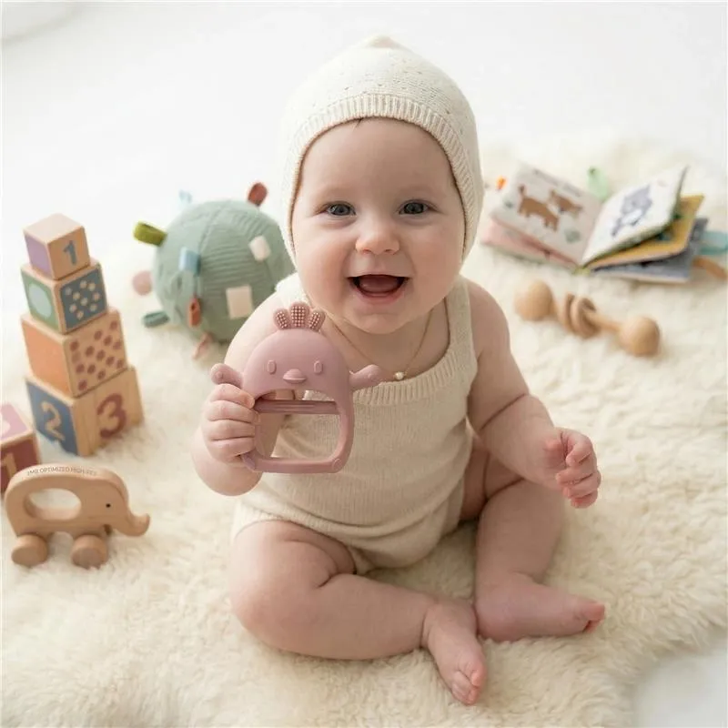 This mitten-style teether is perfect for babies who love to chew on their hands. It features an adjustable strap to ensure a secure fit, preventing it from falling off and keeping it clean at all times. The crinkly fabric inside adds a fun sensory element, stimulating your baby’s curiosity and encouraging exploration.