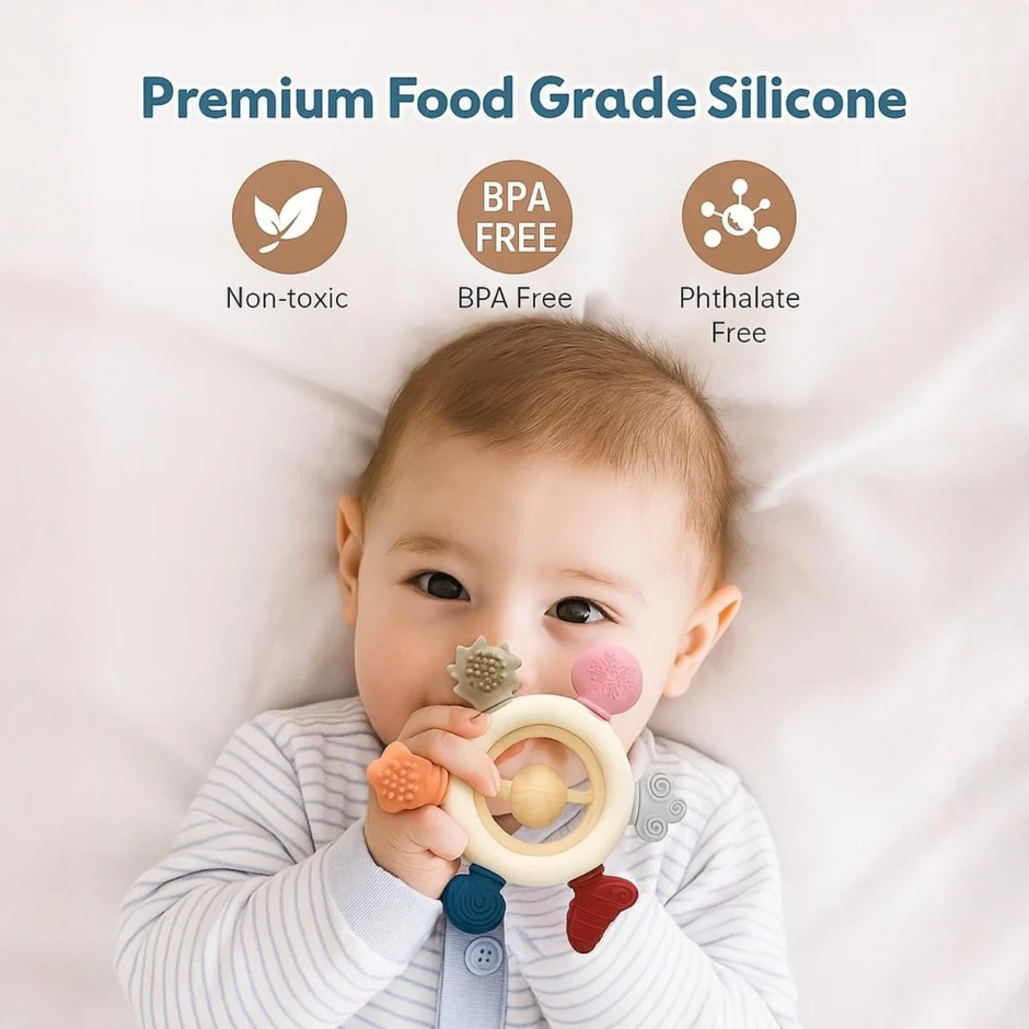 Thoughtfully crafted for tiny hands, its lightweight and easy-to-grip design encourages independent play and improves motor skills. The soft yet durable material ensures long-lasting use without losing shape, making it perfect for daily teething needs.