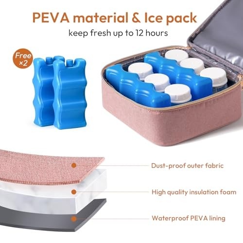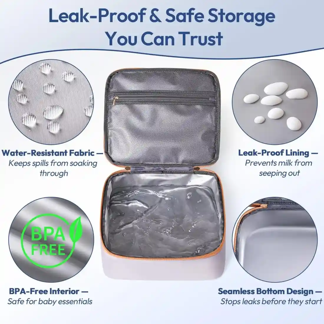 The bag features a high-quality insulated lining along with a reusable ice pack to ensure long-lasting cooling. Its compact yet spacious design easily fits breast pumps, milk bottles, and accessories, while the leakproof interior keeps everything clean and protected.