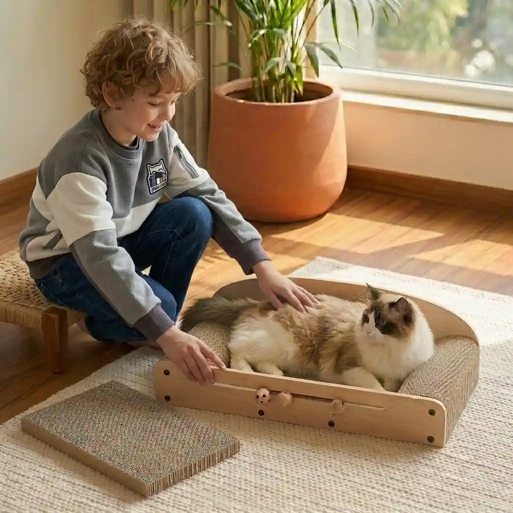 Made from durable, high-quality corrugated cardboard, this scratcher bed is built for long-lasting use. The textured surface promotes healthy claw maintenance, while the sturdy structure ensures stability during scratching and play. Lightweight and easy to move, it fits seamlessly into any room in your home.