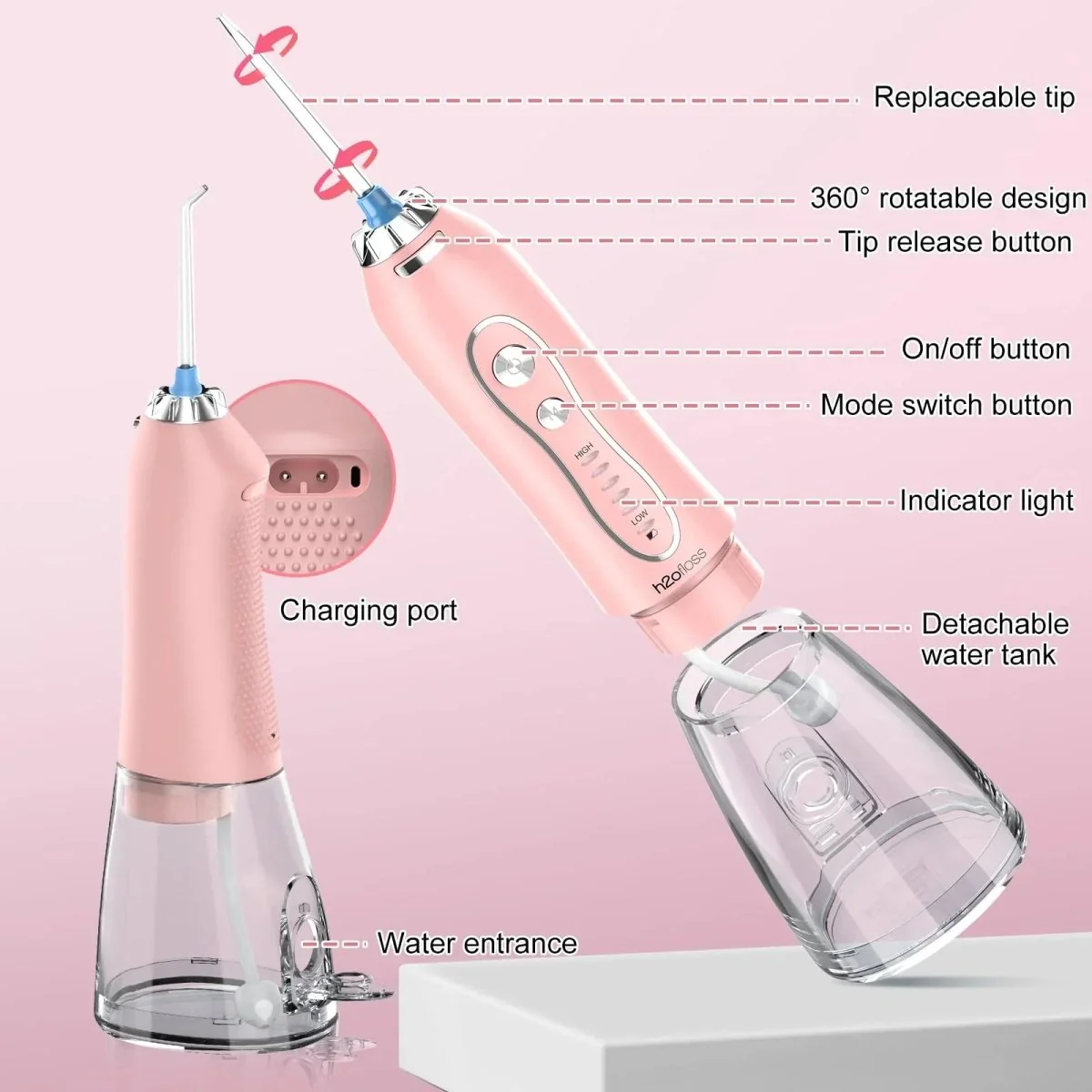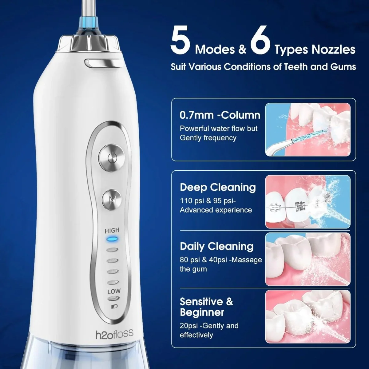 Equipped with six interchangeable tips, this water flosser is suitable for a variety of dental needs, including braces, sensitive gums, and general cleaning. Multiple pressure modes allow you to customize your experience for comfort and efficiency. The easy-fill water tank and long-lasting rechargeable battery ensure hassle-free daily use.
