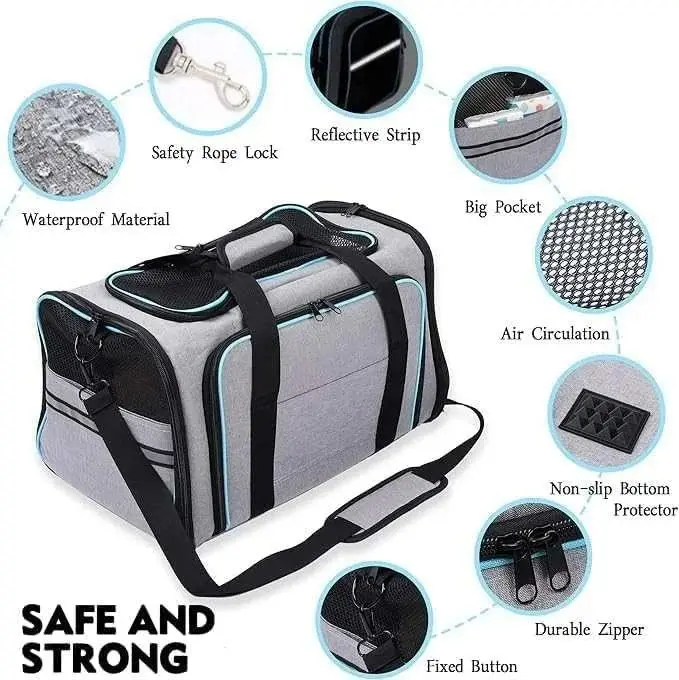 Travel with ease using the Soft-Sided Pet Carrier Bag – Breathable Portable Pet Travel Bag. Designed for comfort and convenience, this carrier provides a cozy space for your cat or small dog, making every journey stress-free. Its soft-sided structure offers flexibility while keeping your pet safe and relaxed during travel.